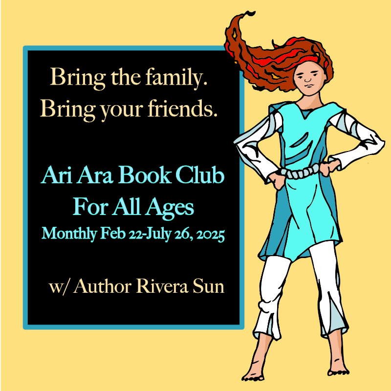 A free, monthly book discussion throughout 2025 on the novels in the Ari Ara Series. Join this virtual book club for kids and adults on the award-winning, peace-waging fantasy of Rivera Sun’s Ari Ara Series. Each month, we’ll read the next book in the series and gather on zoom to discuss it. We’ll also use art, creativity, games, and group exercises to explore the real-life skills that Ari Ara uses in the adventures. We can be heroes, too!
