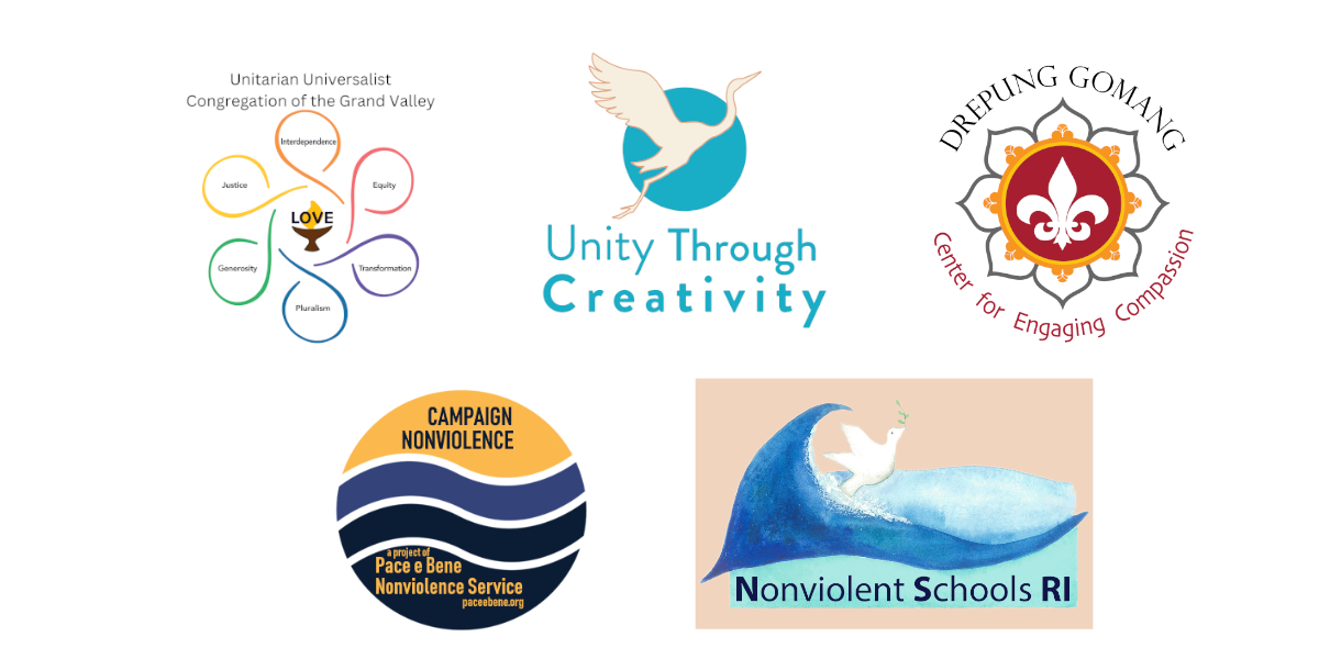 Partners: We’re delighted to be partnering with these organizations: Nonviolent Schools Rhode Island, Inc; Unity Through Creativity Foundation, Unitarian Universalist Church of Grand Junction, CO; the Drepung Gomang Center for Engaging Compassion, Pace e Bene Nonviolence Service.