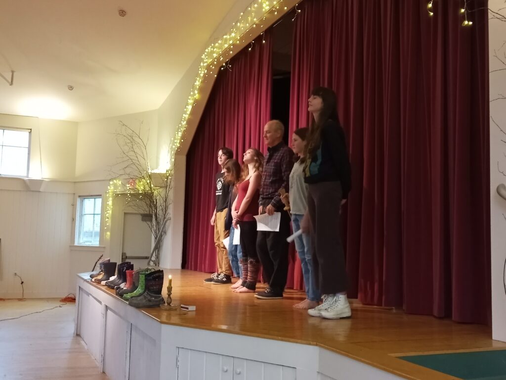 Bay School teacher Scott Springer introduced five of his students who had adapted one of the short stories in The Adventures of Alaren into a theatrical skit. Swiveling in our seats to view the stage, the students reenacted this tale of mourning war, rehumanizing conflict, and using nonviolent action to stop a king from charging into battle. To see these words come to life – to be given voice – through these young people brought tears to my eyes and sent good shivers down my spine. This is why I write my stories.