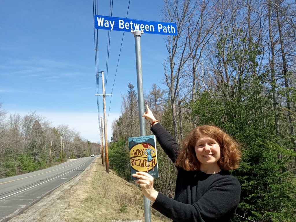 Look at this! Some great people in Blue Hill are starting a tiny house co-housing community … and they named their street after my novel! I’m so honored and thrilled. I saw the sign on the way to the Portrait Unveiling and wondered if it was just happenstance. Then the mother and daughter (who performed in the Alaren skit) came up to me at the end and told me the backstory.